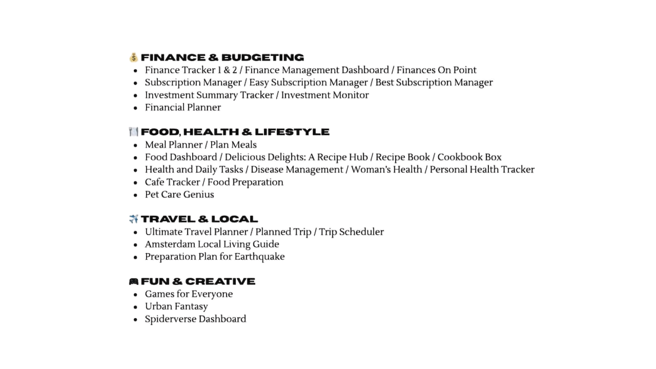 - Comprehensive Organization: Includes templates for task management, goal tracking, content planning, budgeting, and idea organization.